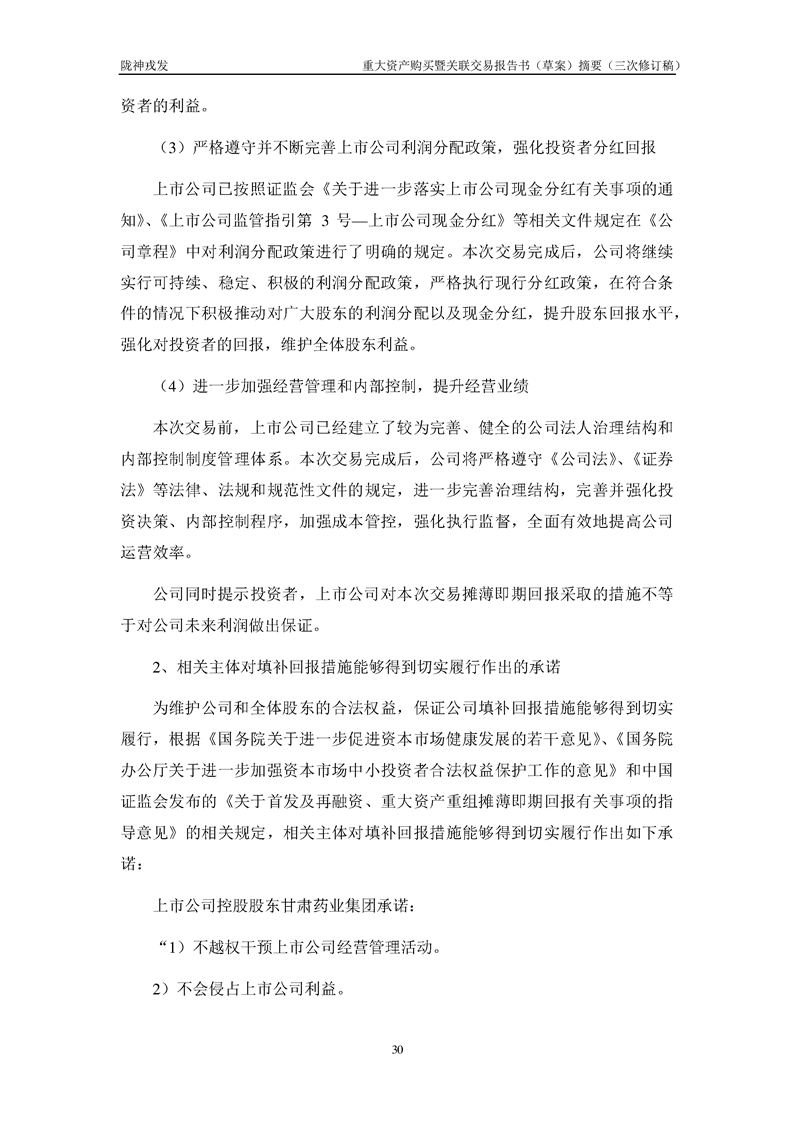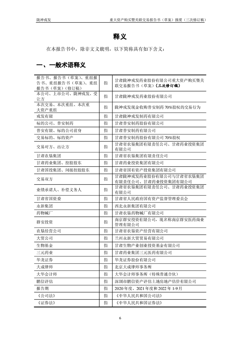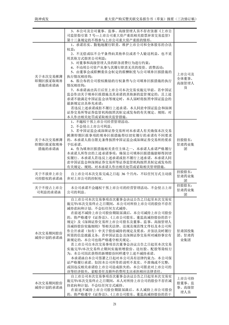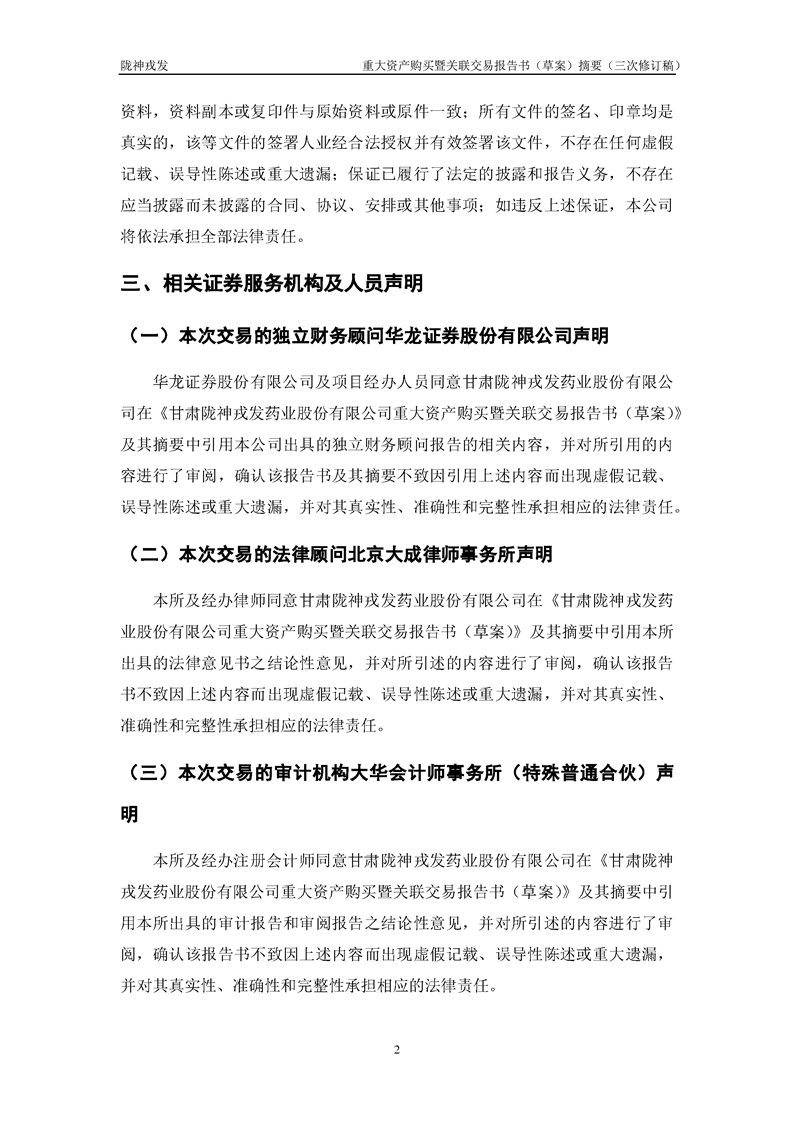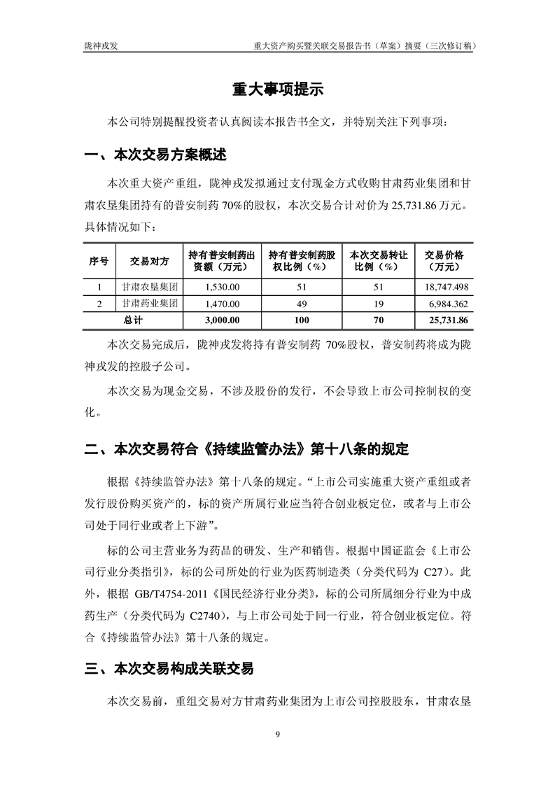 甘肅隴神戎發(fā)藥業(yè)股份有限公司重大資產(chǎn)購(gòu)買暨關(guān)聯(lián)交易報(bào)告書(草案)摘要(三次修訂稿)