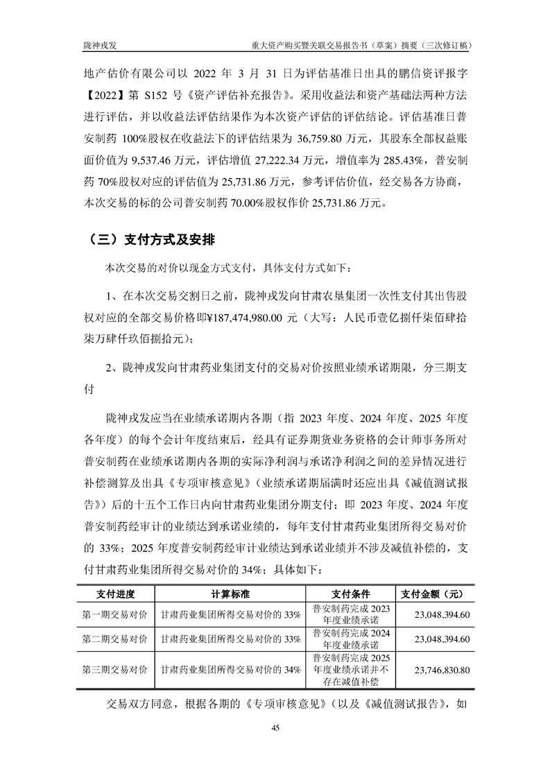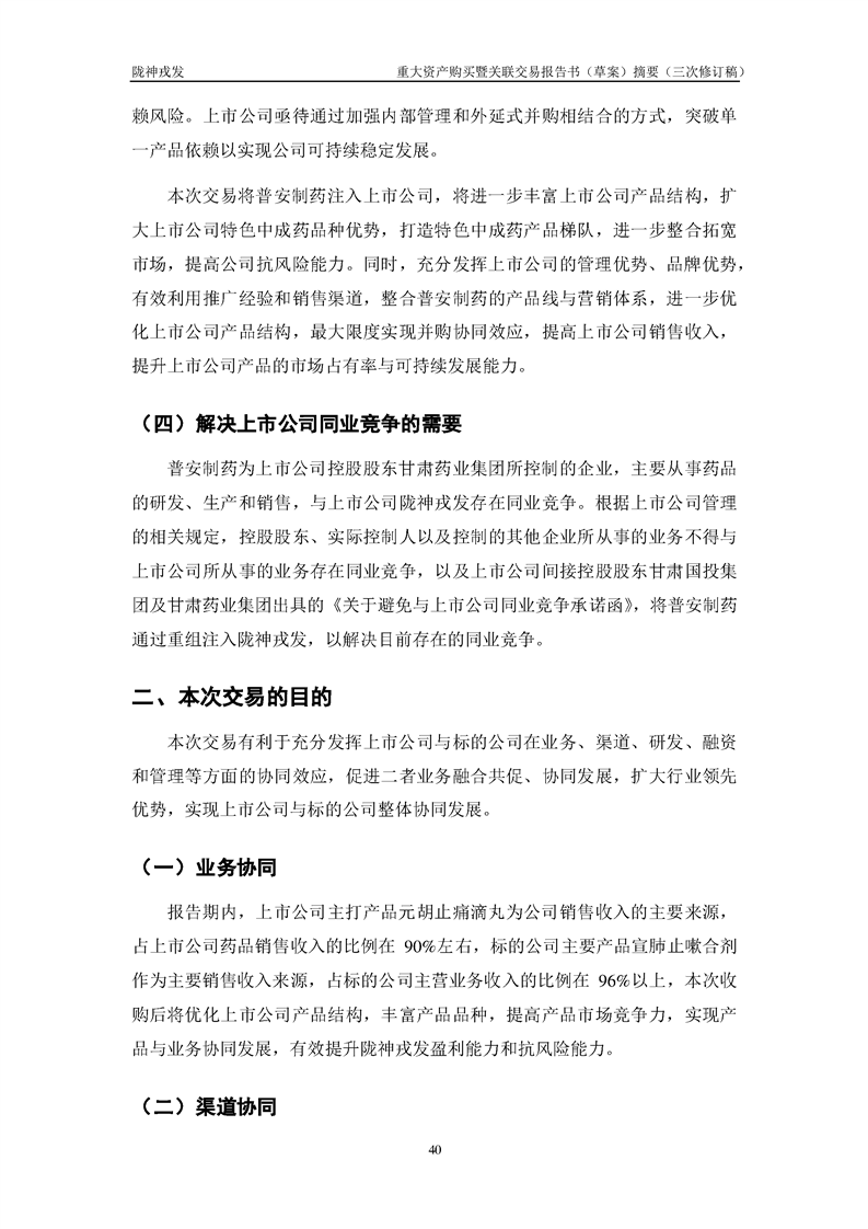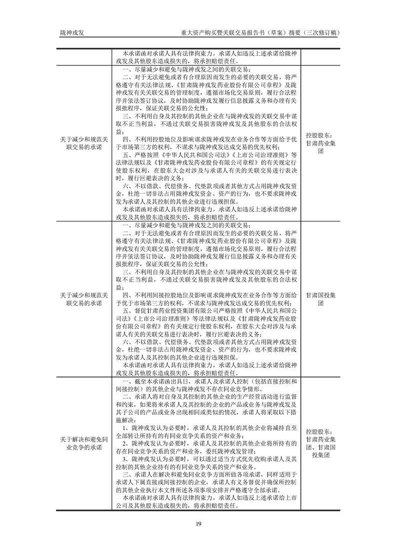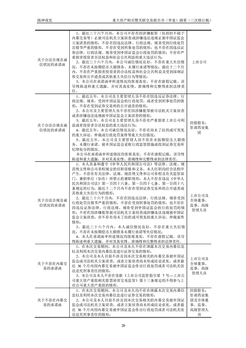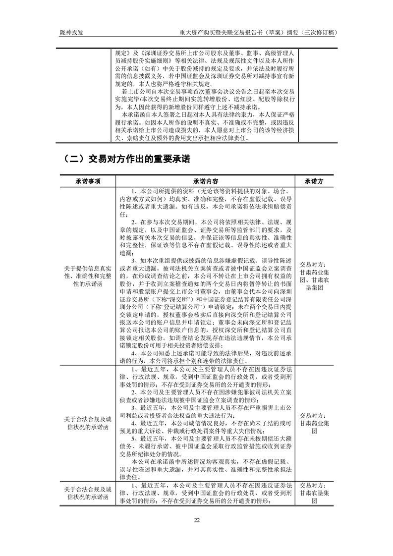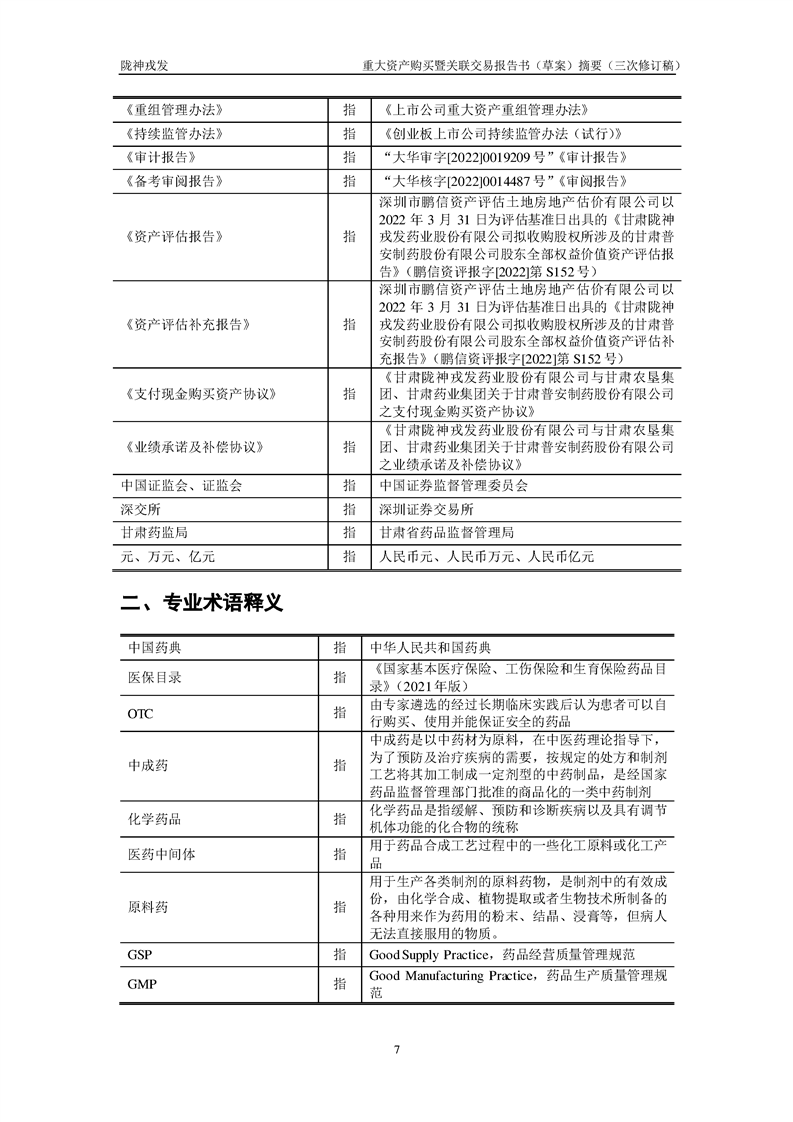 甘肅隴神戎發(fā)藥業(yè)股份有限公司重大資產(chǎn)購(gòu)買暨關(guān)聯(lián)交易報(bào)告書(草案)摘要(三次修訂稿)