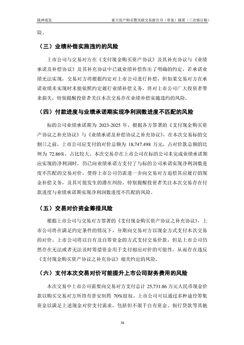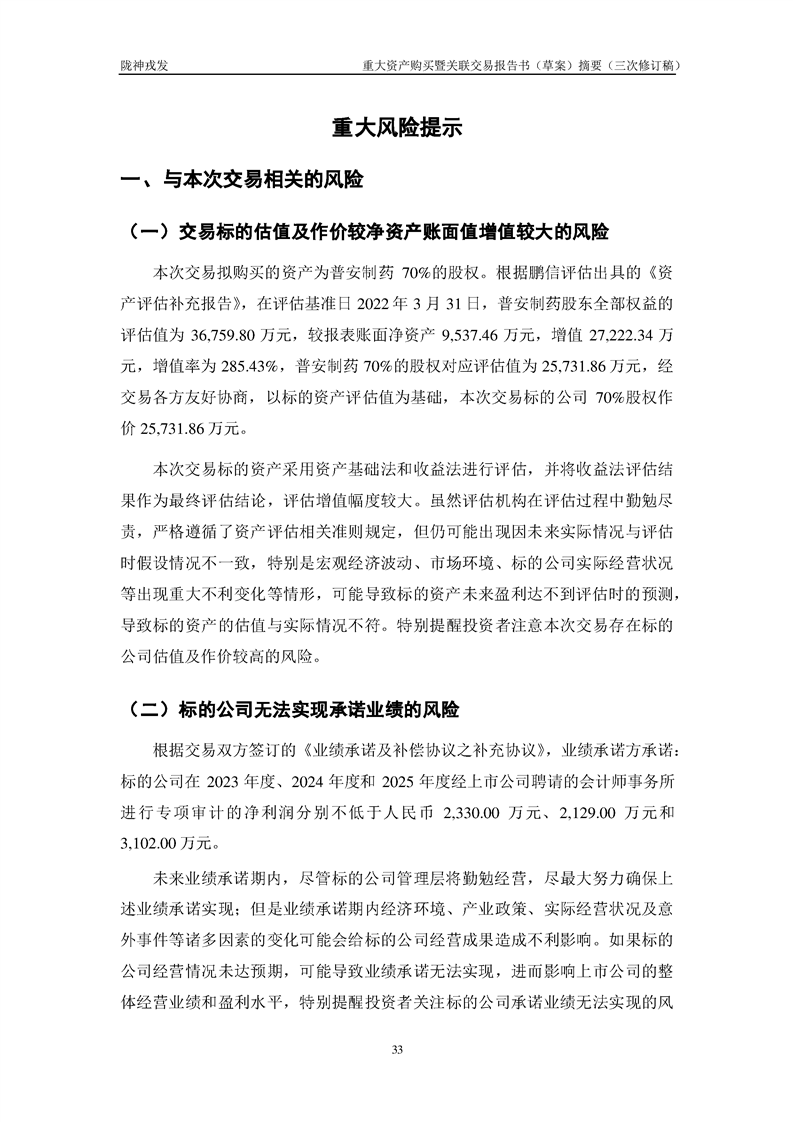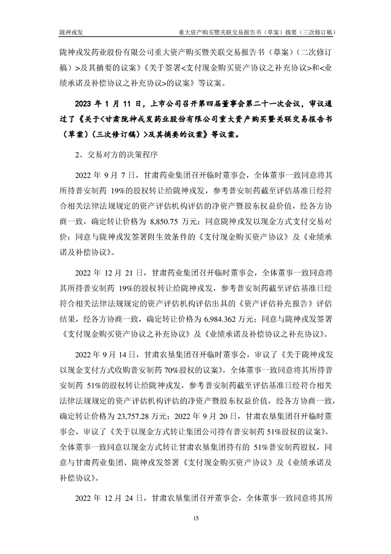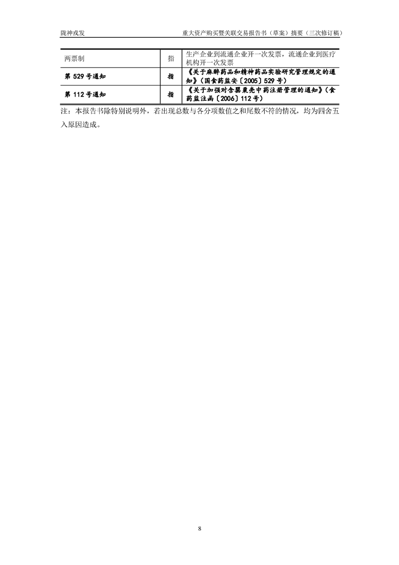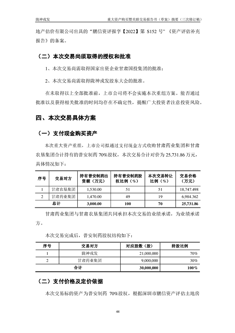 甘肅隴神戎發(fā)藥業(yè)股份有限公司重大資產(chǎn)購(gòu)買暨關(guān)聯(lián)交易報(bào)告書(草案)摘要(三次修訂稿)