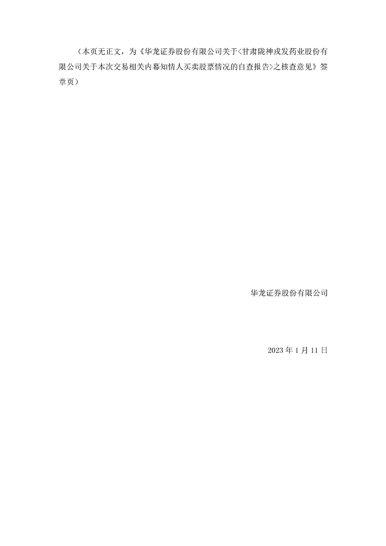 華龍證券股份有限公司關(guān)于《甘肅隴神戎發(fā)藥業(yè)股份有限公司關(guān)于本次交易相關(guān)內(nèi)幕知情人買(mǎi)賣(mài)股票情況的自查報(bào)告》之核查意見(jiàn)