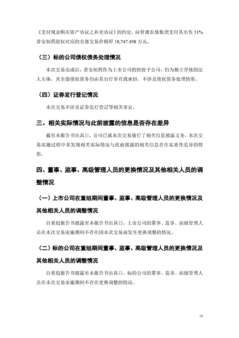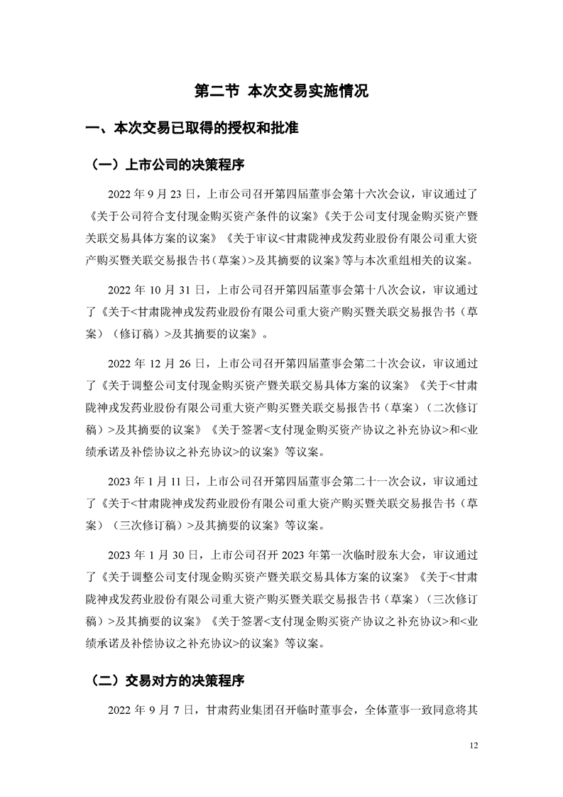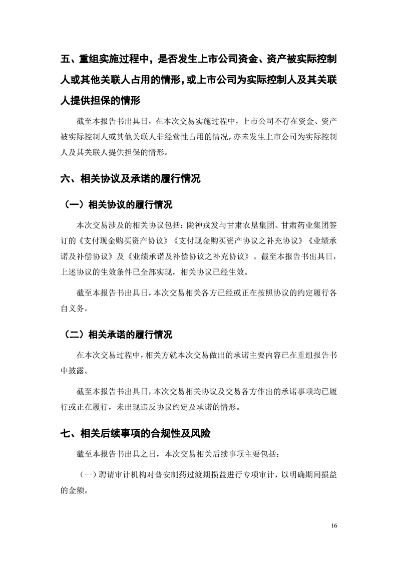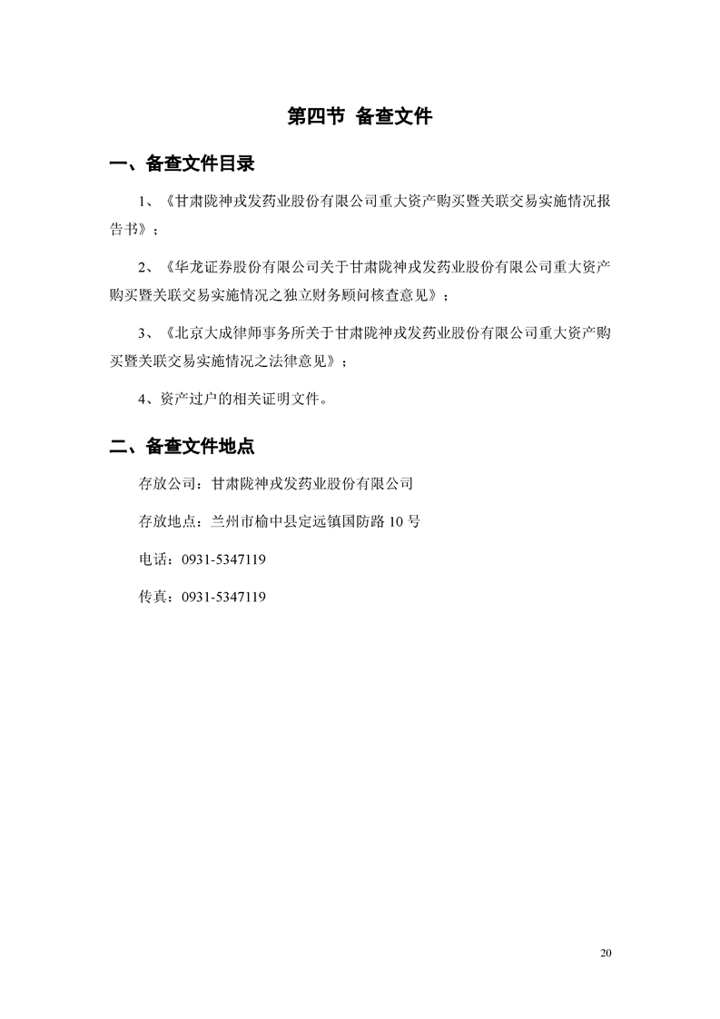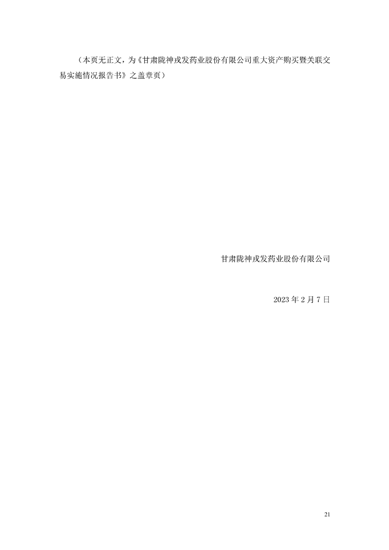 甘肅隴神戎發(fā)藥業(yè)股份有限公司重大資產(chǎn)購買暨關(guān)聯(lián)交易實施情況報告書