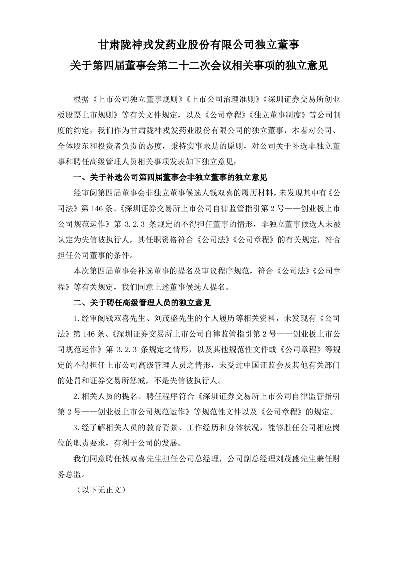 獨(dú)立董事關(guān)于第四屆董事會(huì)第二十二次會(huì)議相關(guān)事項(xiàng)的獨(dú)立意見
