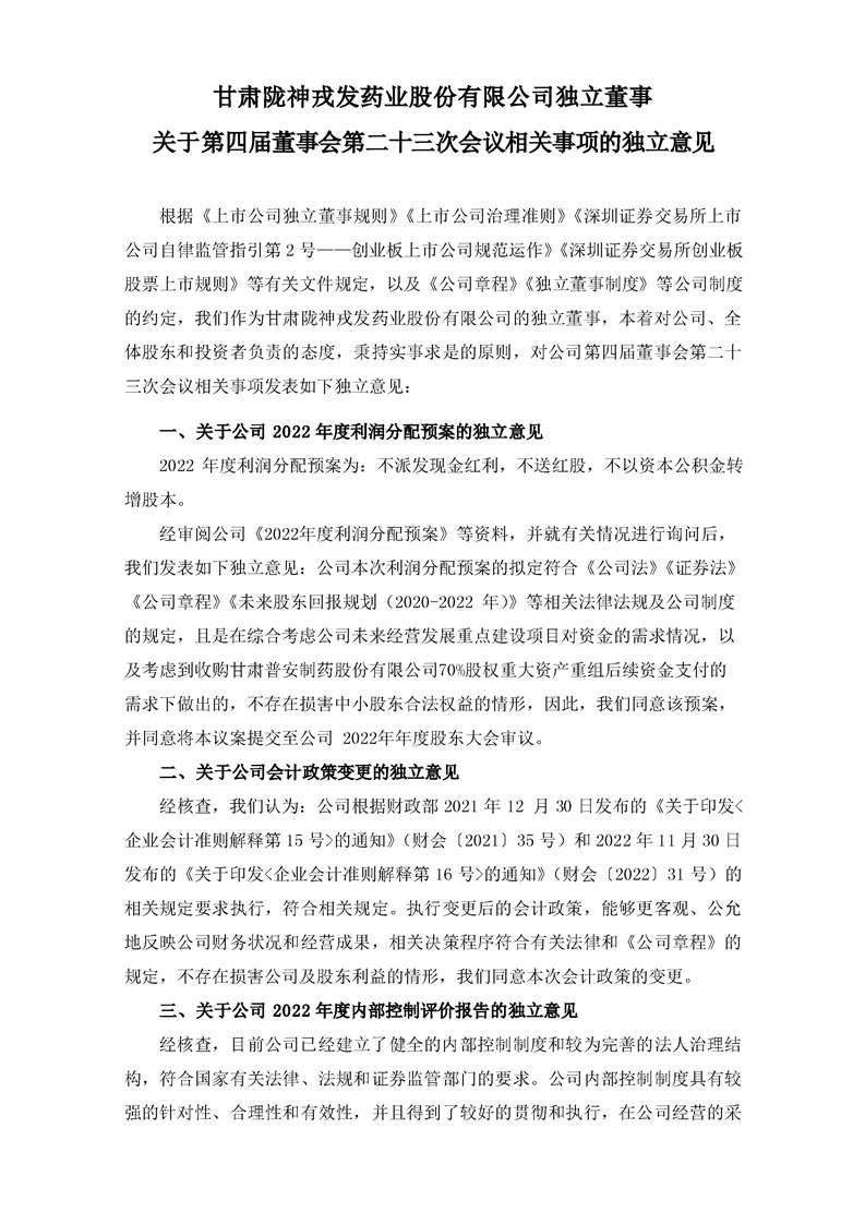 獨(dú)立董事關(guān)于第四屆董事會(huì)第二十三次會(huì)議相關(guān)事項(xiàng)的獨(dú)立意見
