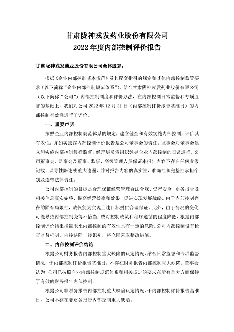 2022年度內(nèi)部控制評價報告