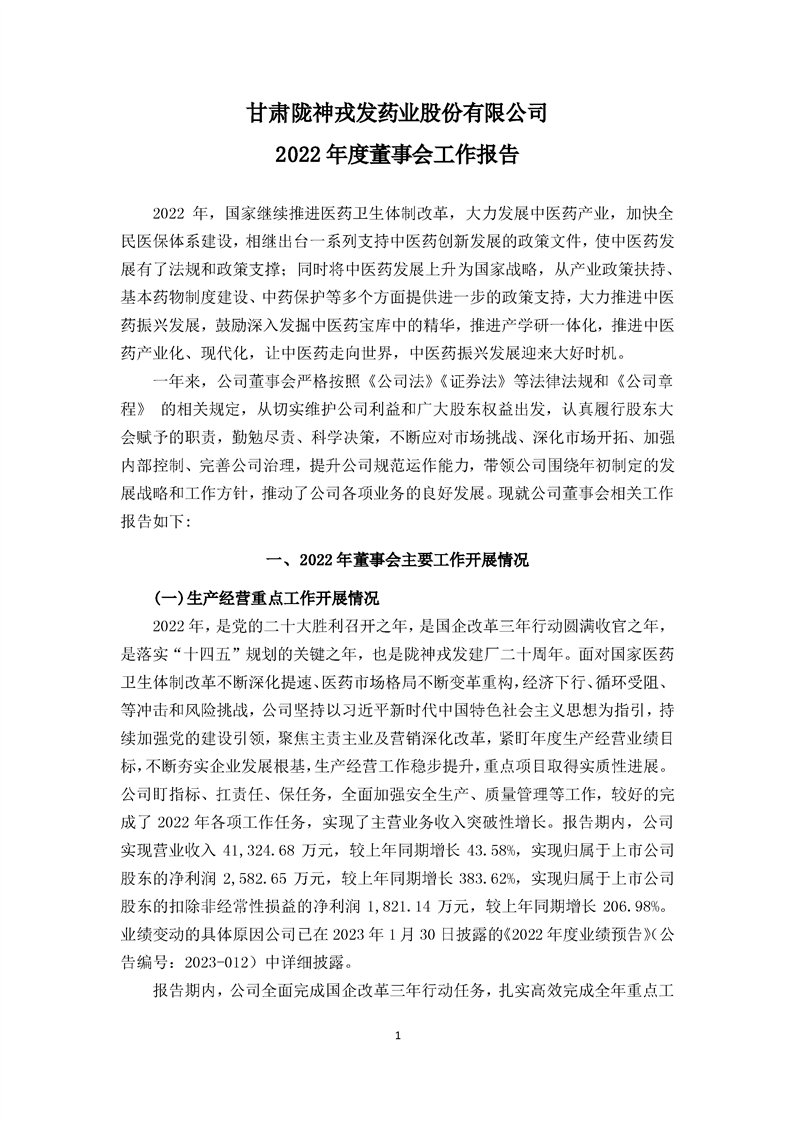 2022年度董事會工作報告