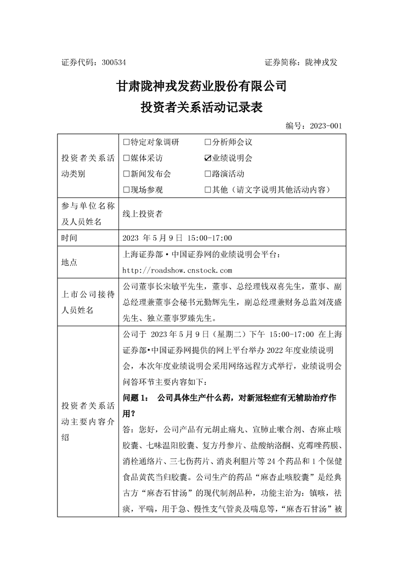 2022年度業(yè)績說明會投資者關(guān)系活動記錄表