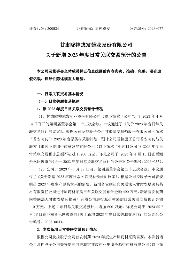關于新增2023年度日常關聯(lián)交易預計的公告