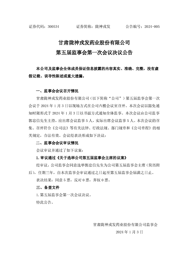 第五屆監(jiān)事會(huì)第一次會(huì)議決議公告