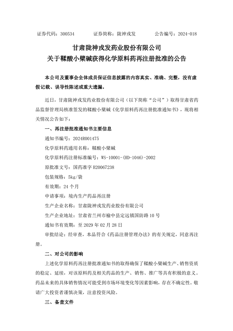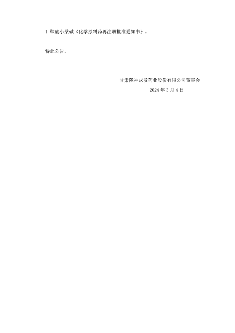關于鞣酸小檗堿獲得化學原料藥再注冊批準的公告