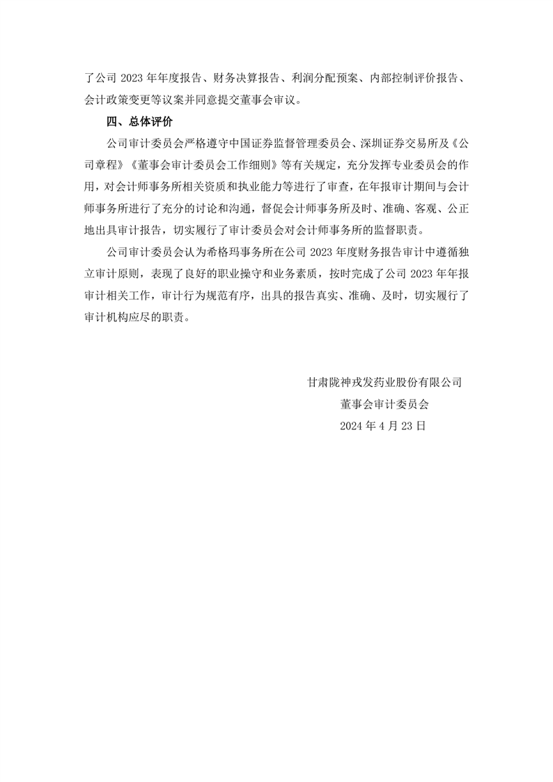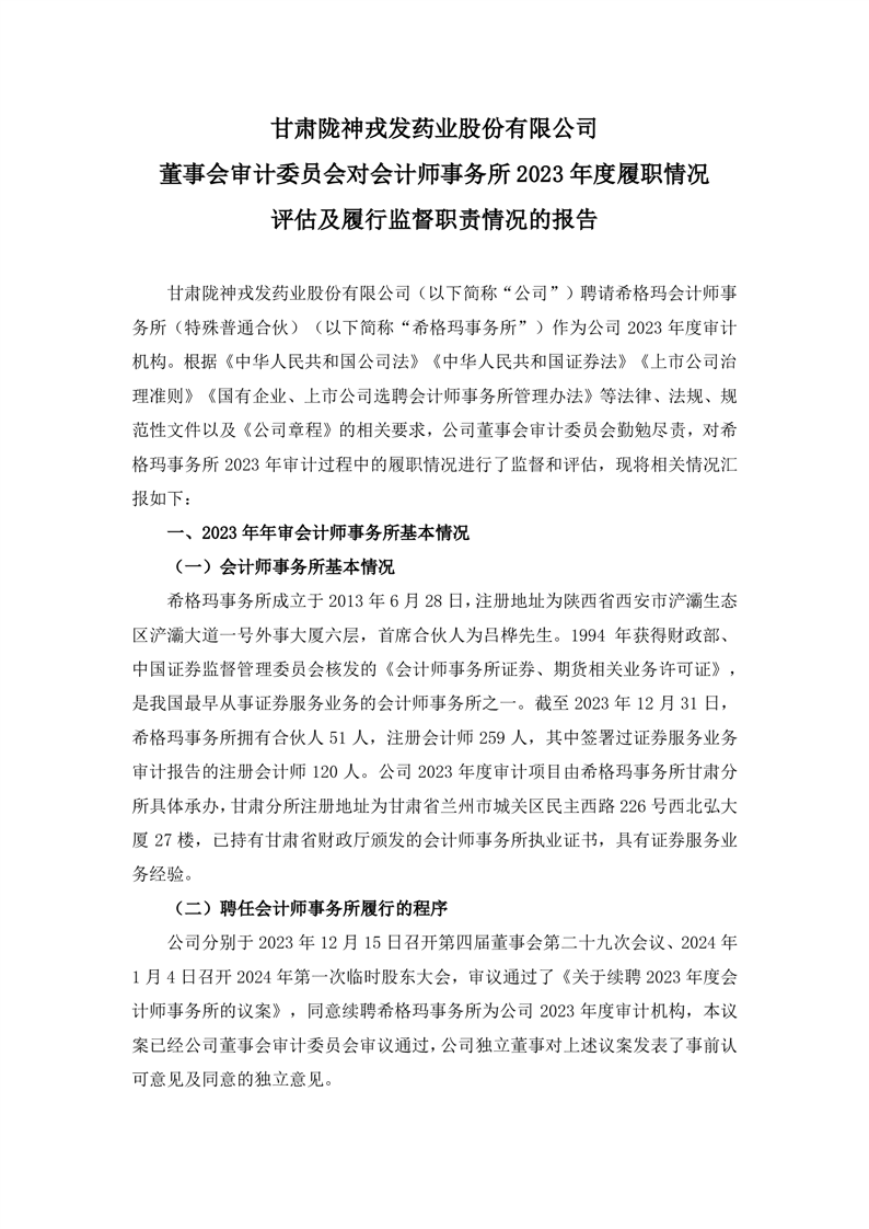 董事會審計委員會對會計師事務所2023年度履職情況評估及履行監(jiān)督職責情況的報告