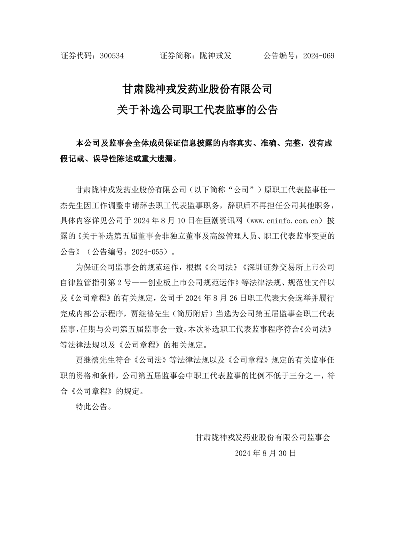 關(guān)于補(bǔ)選公司職工代表監(jiān)事的公告