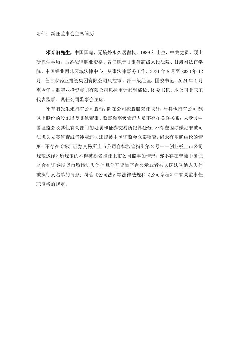 關(guān)于公司監(jiān)事會(huì)主席變更的公告
