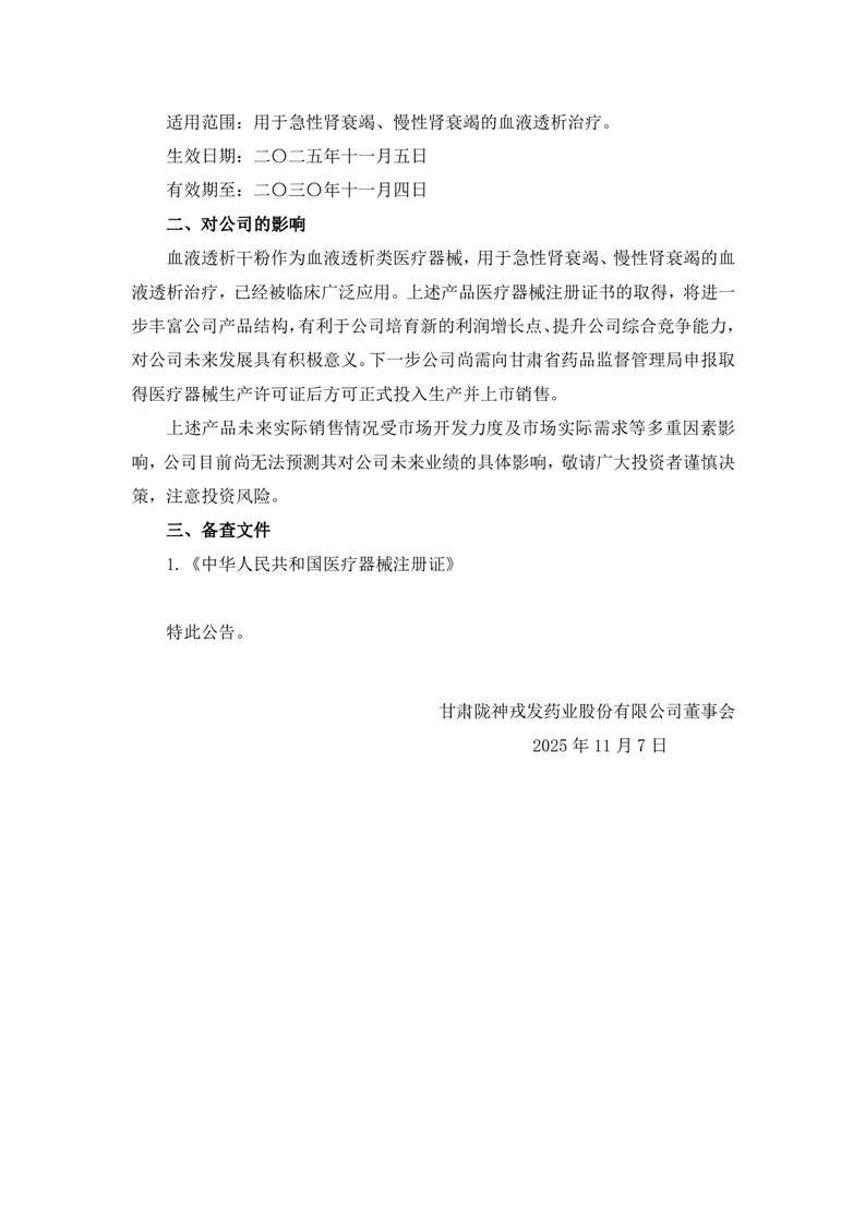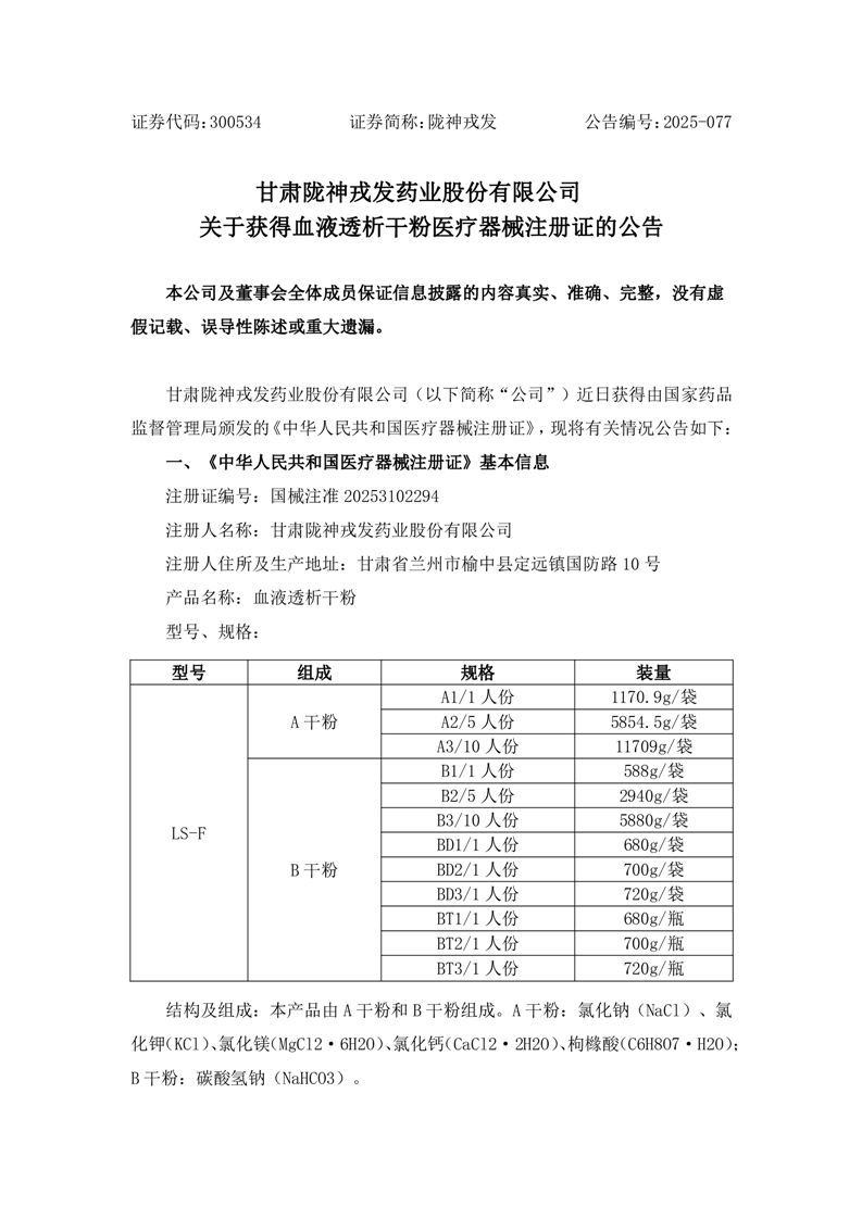 關(guān)于獲得血液透析干粉醫(yī)療器械注冊(cè)證的公告