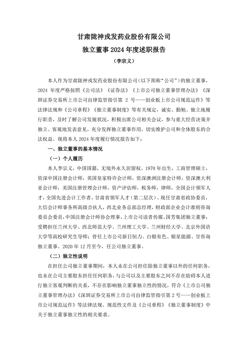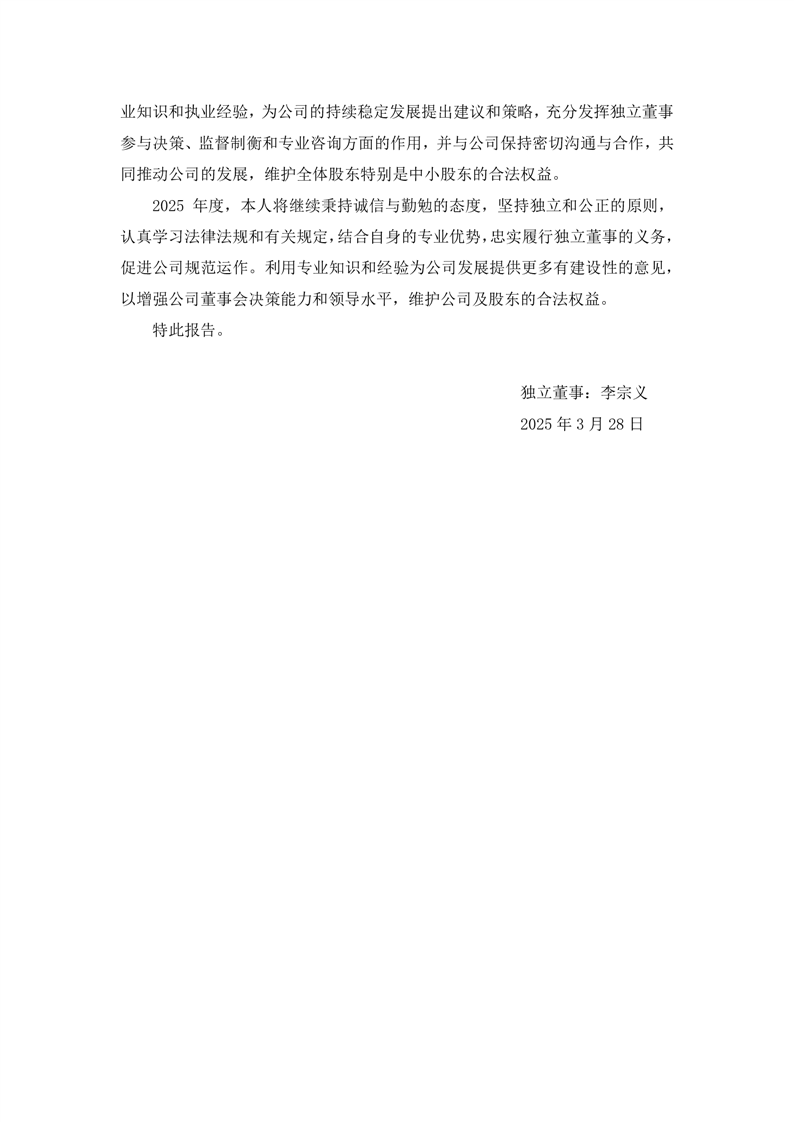 獨(dú)立董事2024年度述職報(bào)告(李宗義)