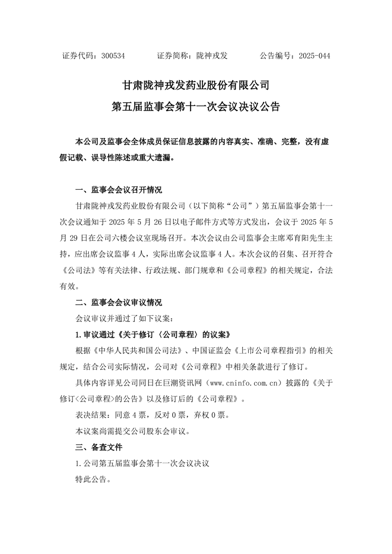 第五屆監(jiān)事會第十一次會議決議公告