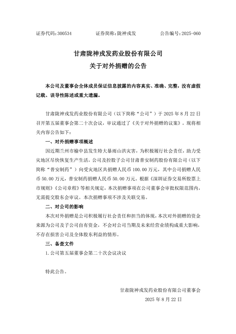 關(guān)于對外捐贈的公告
